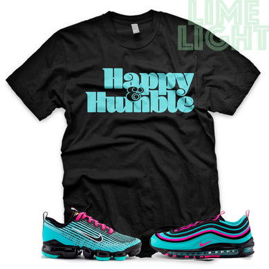 Hyper Turquoise/ Pink Blast "Happy and Humble" VaporMax Flyknit 3 Black T-Shirt