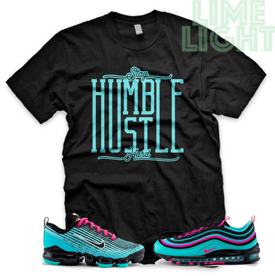 Hyper Turquoise/ Pink Blast "Stay Humble Hustle Hard" VaporMax Flyknit 3 Black T-Shirt