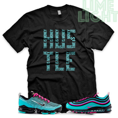 Hyper Turquoise/ Pink Blast "Time is Money" VaporMax Flyknit 3 Black T-Shirt