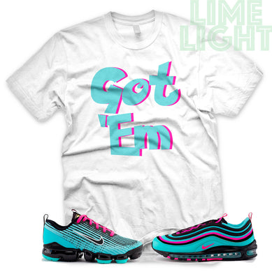 Hyper Turquoise/ Pink Blast "Got 'Em" VaporMax Flyknit 3 White T-Shirt