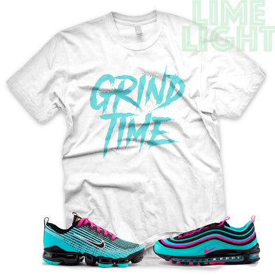 Hyper Turquoise/ Pink Blast "Grind Time" VaporMax Flyknit 3 White T-Shirt