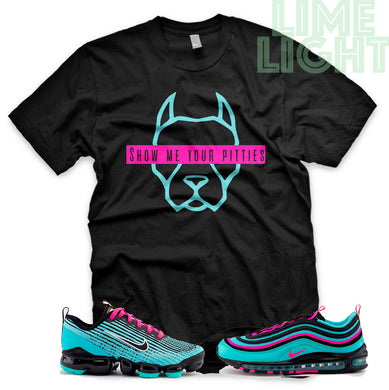 Hyper Turquoise/ Pink Blast "Show Me Your Pitties" VaporMax Flyknit 3 Black T-Shirt