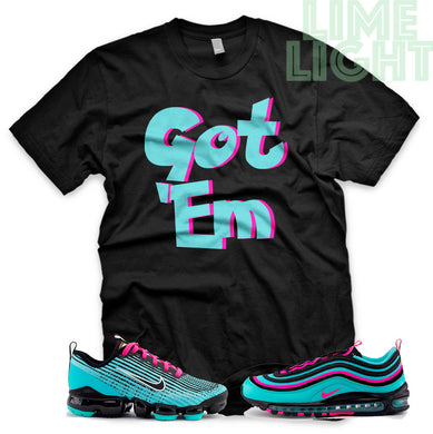 Hyper Turquoise/ Pink Blast "Got 'Em" VaporMax Flyknit 3 Black T-Shirt