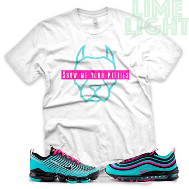 Hyper Turquoise/ Pink Blast "Show Me Your Pitties" VaporMax Flyknit 3 White T-Shirt