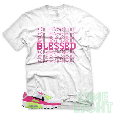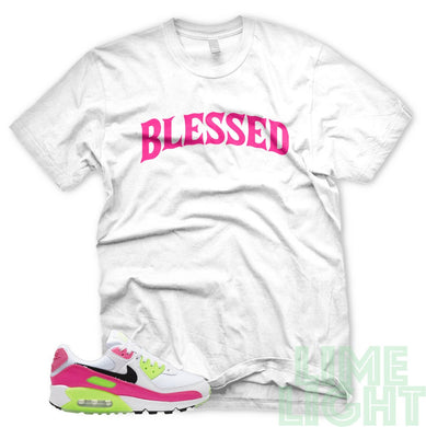 Pink Blast/ Ghost Green "Blessed" Air Max 90 White T-Shirt