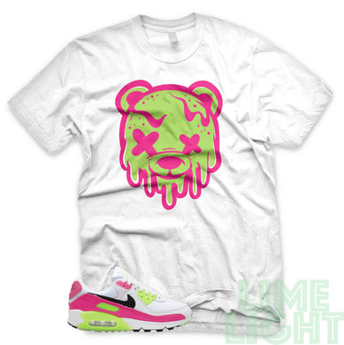 Pink Blast/ Ghost Green "Drippy Bear" Air Max 90 White T-Shirt