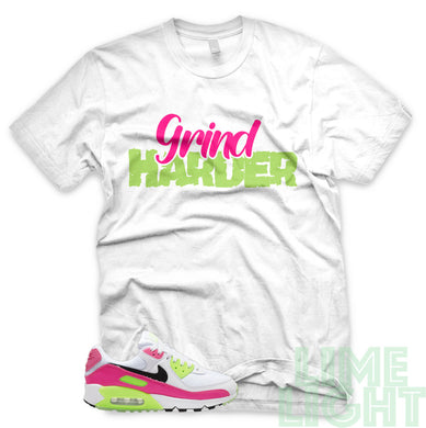 Pink Blast/ Ghost Green "Grind Harder" Air Max 90 White T-Shirt