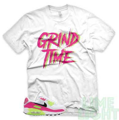 Pink Blast/ Ghost Green "Grind Time" Air Max 90 White T-Shirt