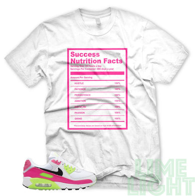 Pink Blast/ Ghost Green "Success Nutrition Facts" Air Max 90 White T-Shirt