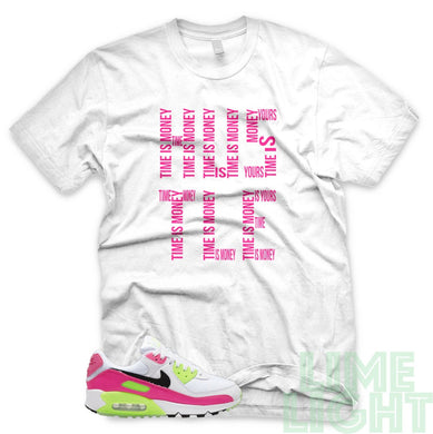 Pink Blast/ Ghost Green "Time is Money" Air Max 90 White T-Shirt