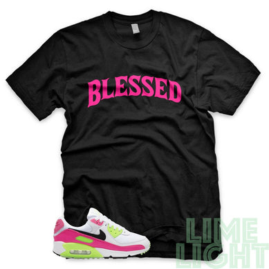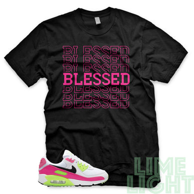 Pink Blast/ Ghost Green "Blessed" Air Max 90 Black T-Shirt
