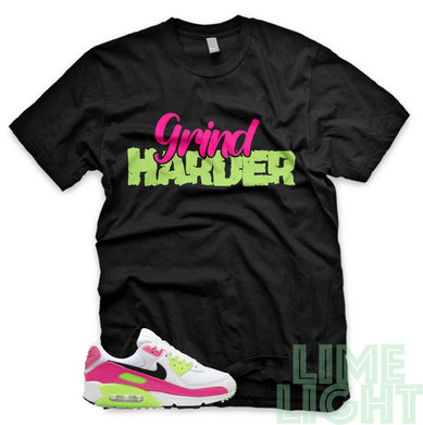 Pink Blast/ Ghost Green "Grind Harder" Air Max 90 Black T-Shirt