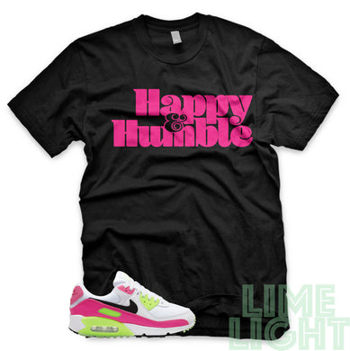 Pink Blast/ Ghost Green "Happy and Humble" Air Max 90 Black T-Shirt