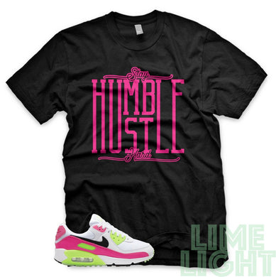 Pink Blast/ Ghost Green "Stay Humble Hustle Hard" Air Max 90 Black T-Shirt