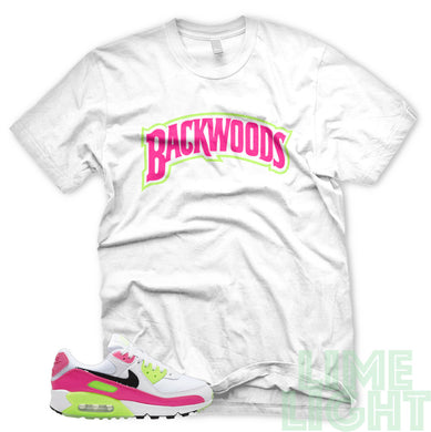 Pink Blast/ Ghost Green "Backwoods" Air Max 90 White T-Shirt