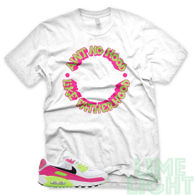 Pink Blast/ Ghost Green "Ain't No Hood Like Fatherhood" Air Max 90 White T-Shirt