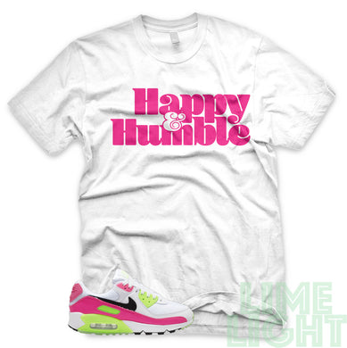 Pink Blast/ Ghost Green "Happy and Humble" Air Max 90 White T-Shirt