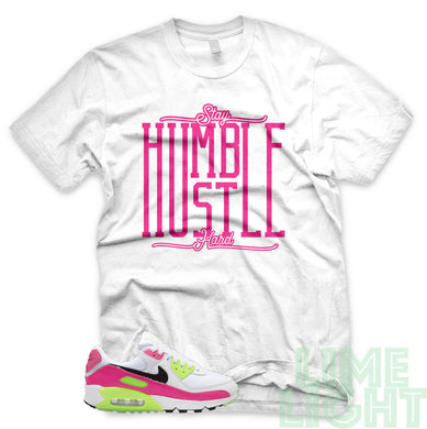 Pink Blast/ Ghost Green "Stay Humble Hustle Hard" Air Max 90 White T-Shirt