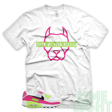 Pink Blast/ Ghost Green "Show Me Your Pitties" Air Max 90 White T-Shirt