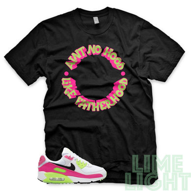 Pink Blast/ Ghost Green "Ain't No Hood Like Fatherhood" Air Max 90 Black T-Shirt