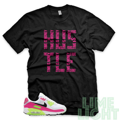 Pink Blast/ Ghost Green "Time is Money" Air Max 90 Black T-Shirt