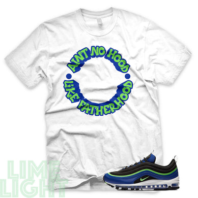 Royal Blue/ Neon Green "Ain't No Hood Like Fatherhood" Air Max 97 Sneaker T-Shirt