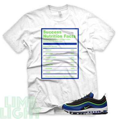 Royal Blue/ Neon Green "Success Nutrition Facts" Air Max 97 Sneaker T-Shirt