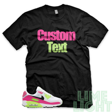 Watermelon Pink Blast/ Ghost Green "CUSTOM TEXT" Airmax 90 Black or White Sneaker T-Shirt
