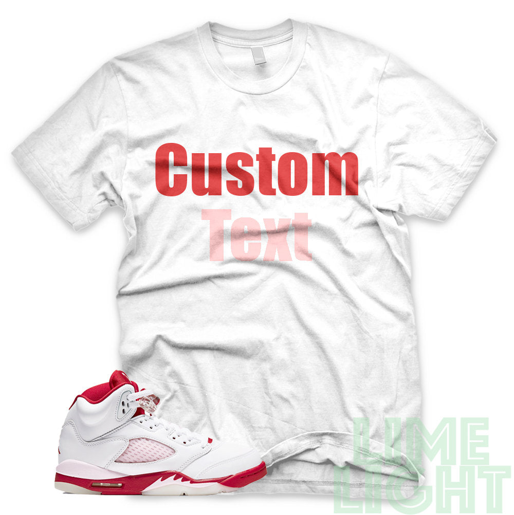 Pink Foam/Gym Red "CUSTOM TEXT" Air Jordan 5 Black or White Sneaker T-Shirt