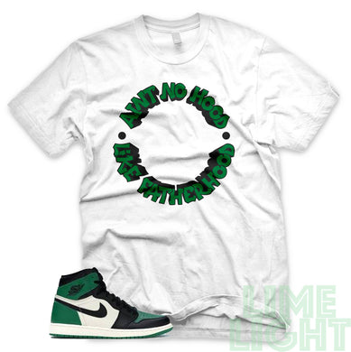 Pine Green "Ain't No Hood Like Fatherhood" Air Jordan 1 Retro High OG White Sneaker T-Shirt