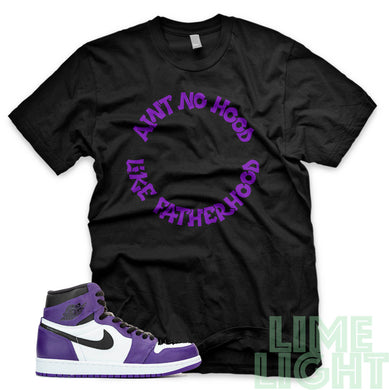 Court Purple "Ain't No Hood Like Fatherhood" Air Jordan 1 Retro Black Sneaker T-Shirt