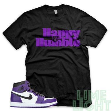 Court Purple "Happy and Humble" Air Jordan 1 Retro Black Sneaker T-Shirt