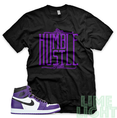 Court Purple "Stay Humble Hustle Hard" Air Jordan 1 Retro Black Sneaker T-Shirt