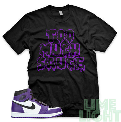 Court Purple "Too Much Sauce" Air Jordan 1 Retro Black Sneaker T-Shirt