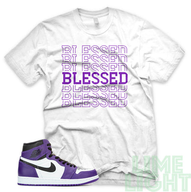 Court Purple "Blessed7" Air Jordan 1 Retro White Sneaker T-Shirt