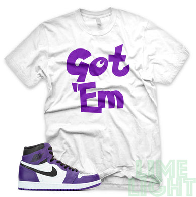 Court Purple "Got Em" Air Jordan 1 Retro White Sneaker T-Shirt