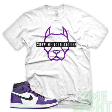 Court Purple "Show Me Your Pitties" Air Jordan 1 Retro White Sneaker T-Shirt