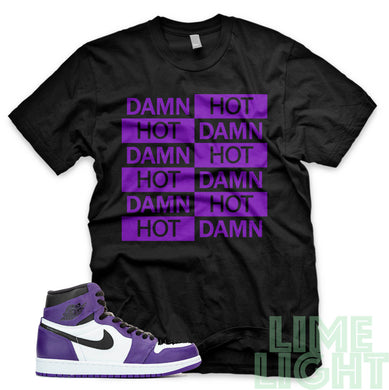 Court Purple "Hot Damn" Air Jordan 1 Retro Black Sneaker T-Shirt