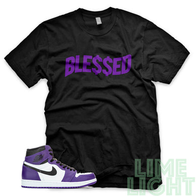 Court Purple "Blessed" Air Jordan 1 Retro Black Sneaker T-Shirt