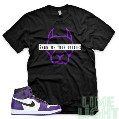 Court Purple "Show Me Your Pitties" Air Jordan 1 Retro Black Sneaker T-Shirt