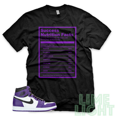 Court Purple "Success Nutrition Facts" Air Jordan 1 Retro Black Sneaker T-Shirt