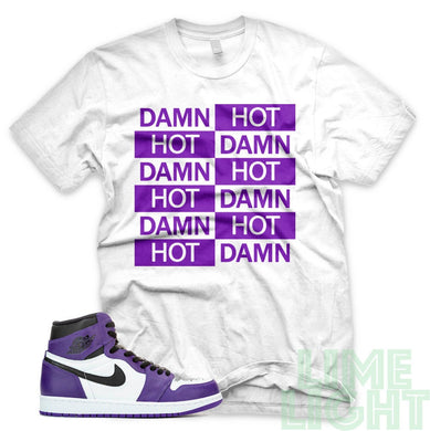 Court Purple "Hot Damn" Air Jordan 1 Retro White Sneaker T-Shirt
