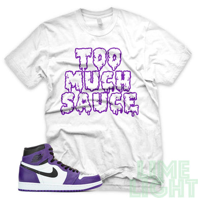 Court Purple "Too Much Sauce" Air Jordan 1 Retro White Sneaker T-Shirt