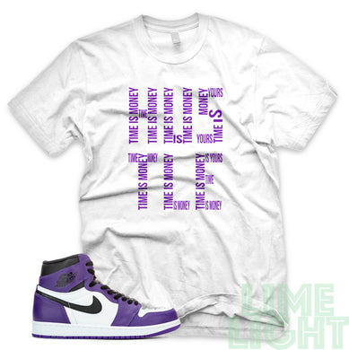 Court Purple "Time is Money" Air Jordan 1 Retro White Sneaker T-Shirt
