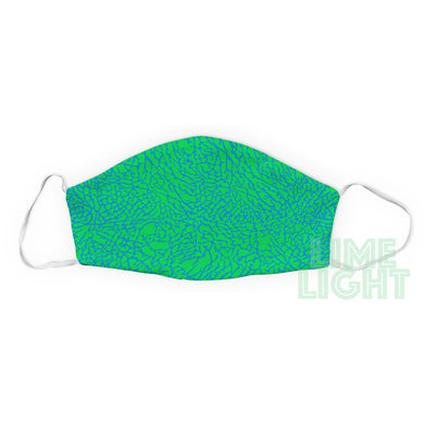 Lime Green Light Blue "Elephant Print" Reusable Washable Face Mask with Interior Filter Pocket