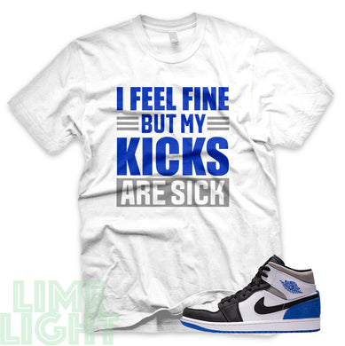 Union Hyper Royal | Game Royal Black Toe "Sick Kicks" Air Jordan 1 White Sneaker T-Shirt