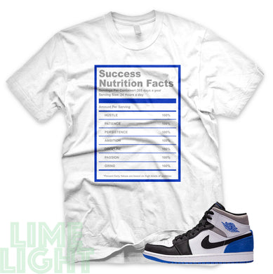 Union Hyper Royal | Game Royal Black Toe "Success Nutrition Facts" Air Jordan 1 White Sneaker T-Shirt