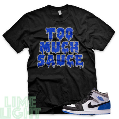 Union Hyper Royal | Game Royal Black Toe "Too Much Sauce" Air Jordan 1 Black Sneaker T-Shirt