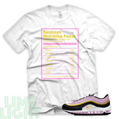 Light Arctic Pink/ Dark Sulfur "Success Nutrition Facts" Air Max 97 Sneaker T-Shirt