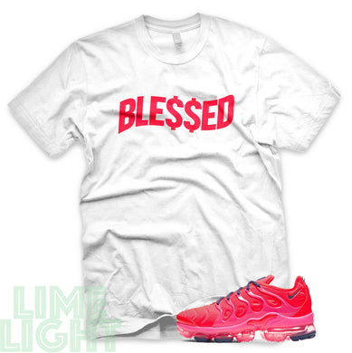 Bright Crimson/ Pink Blast/ Court Purple "Money Blessed" VaporMax Plus White T-Shirt